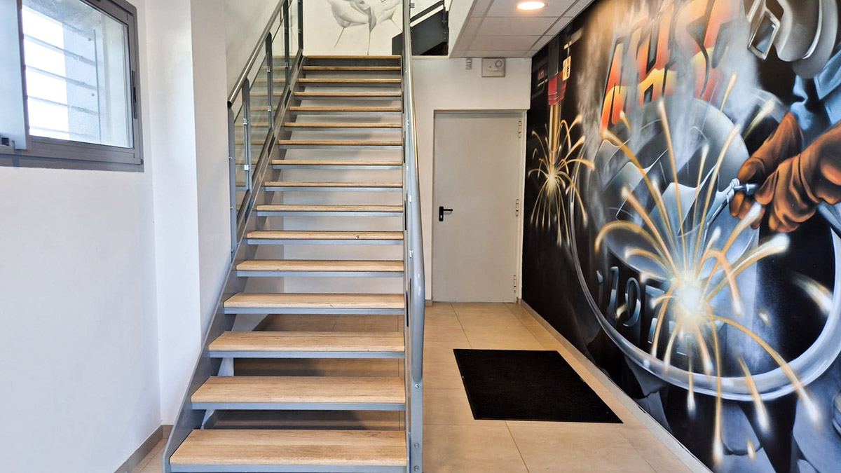 • Deux escaliers métalliques fonctionnels et conformes aux normes de sécurité,