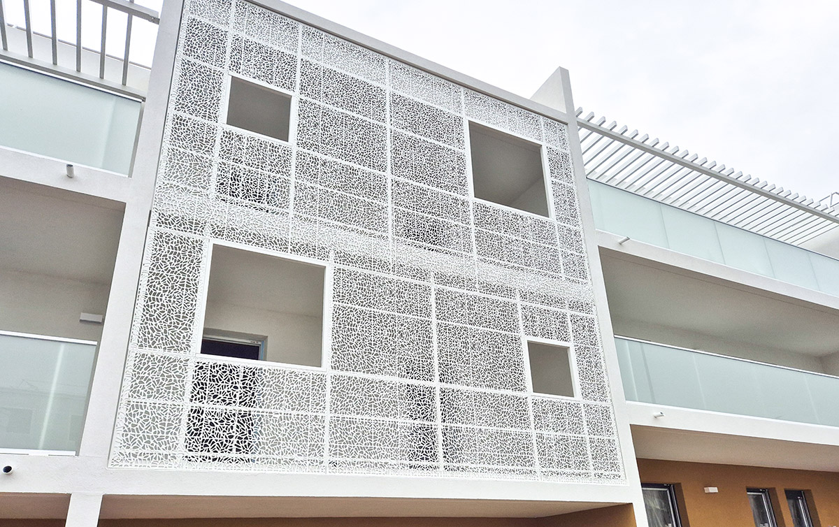 • L’habillage de façade et les encadrements métalliques, pensés pour renforcer l’identité visuelle du site,