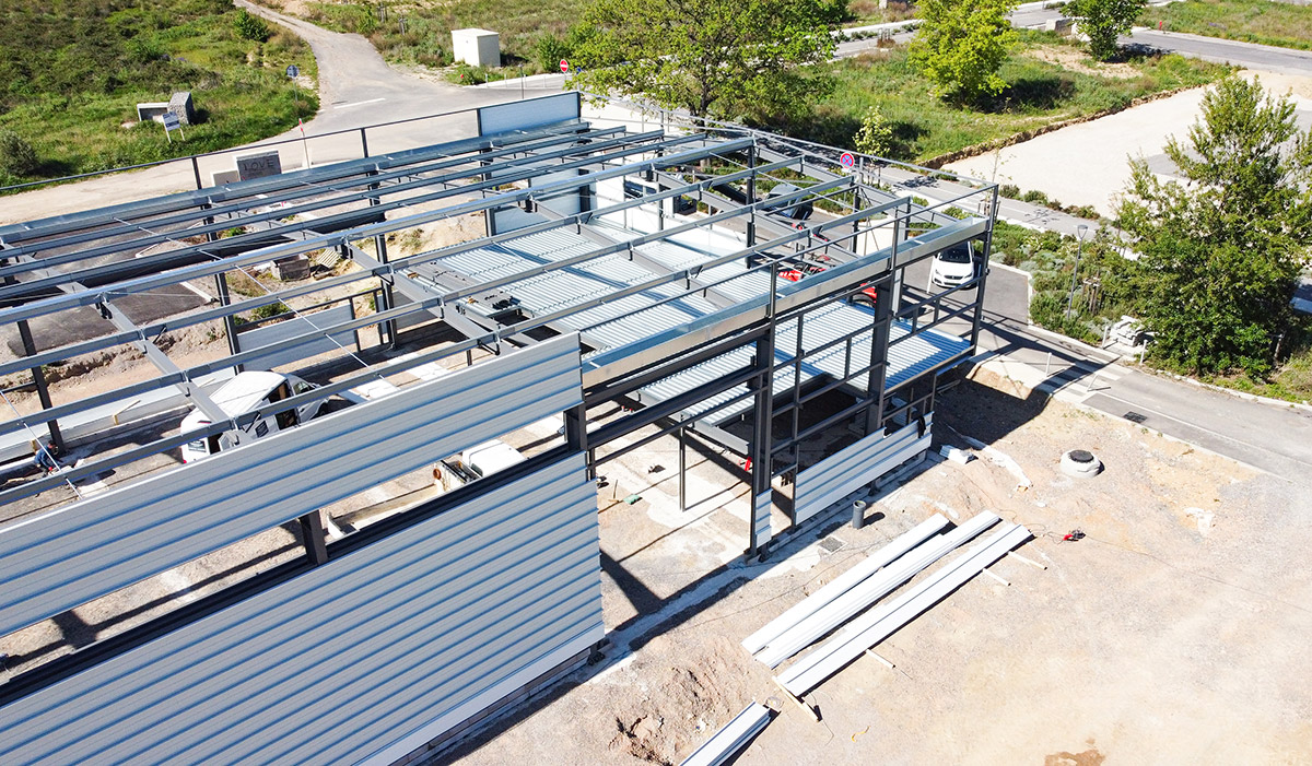 • Le bardage métallique double peau pour assurer l'isolation et la finition des façades,