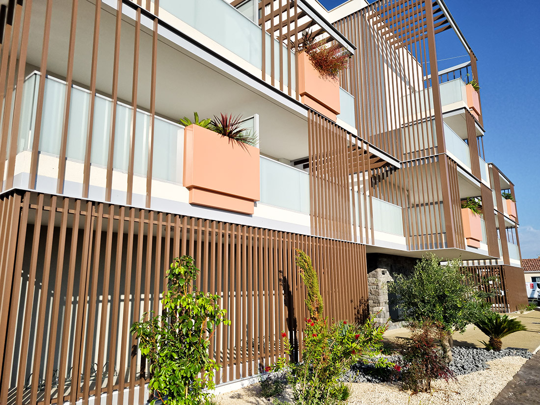 • Des séparatifs métalliques de balcons garantissant intimité et cohérence visuelle,