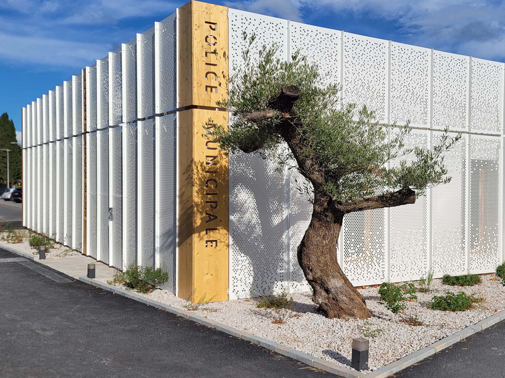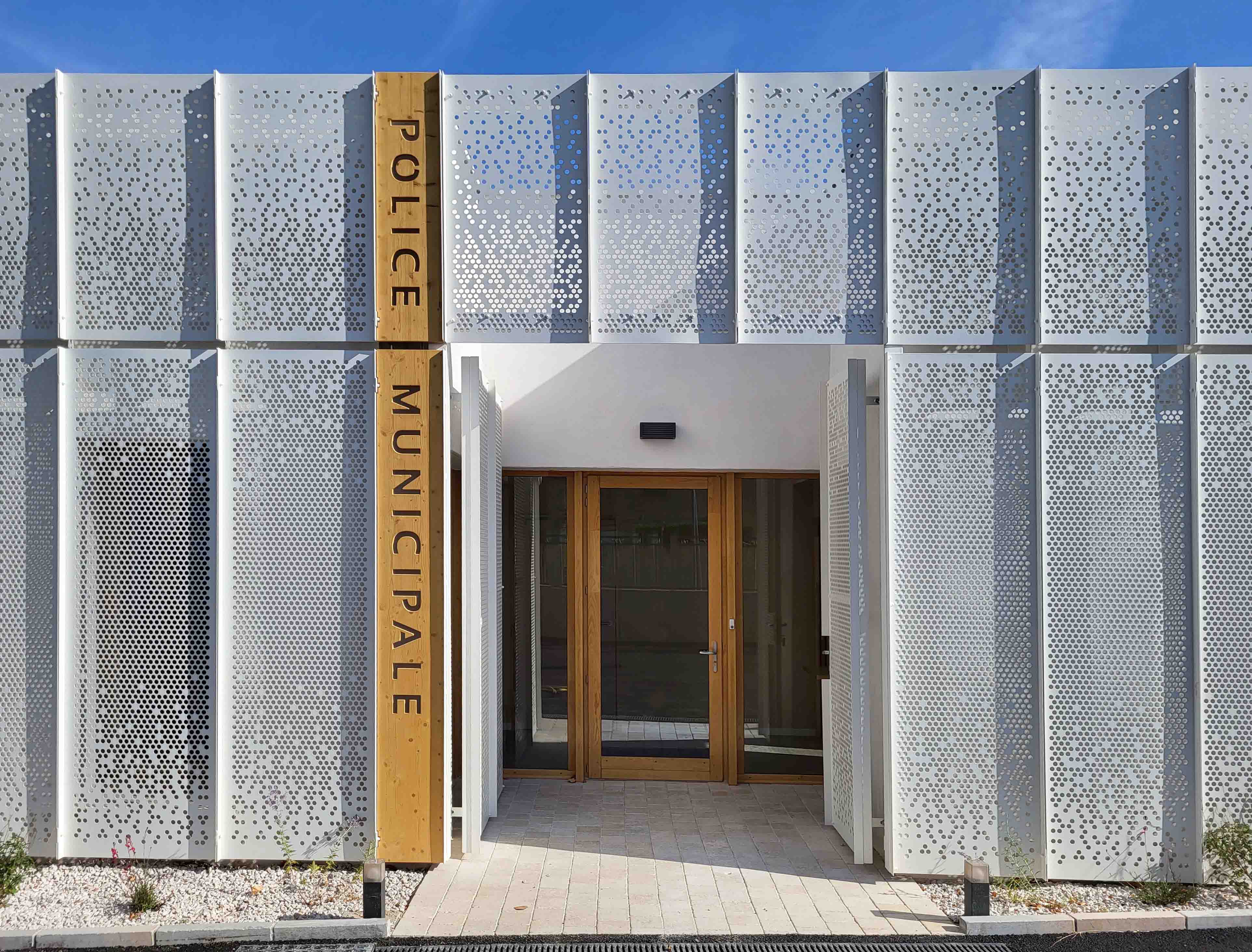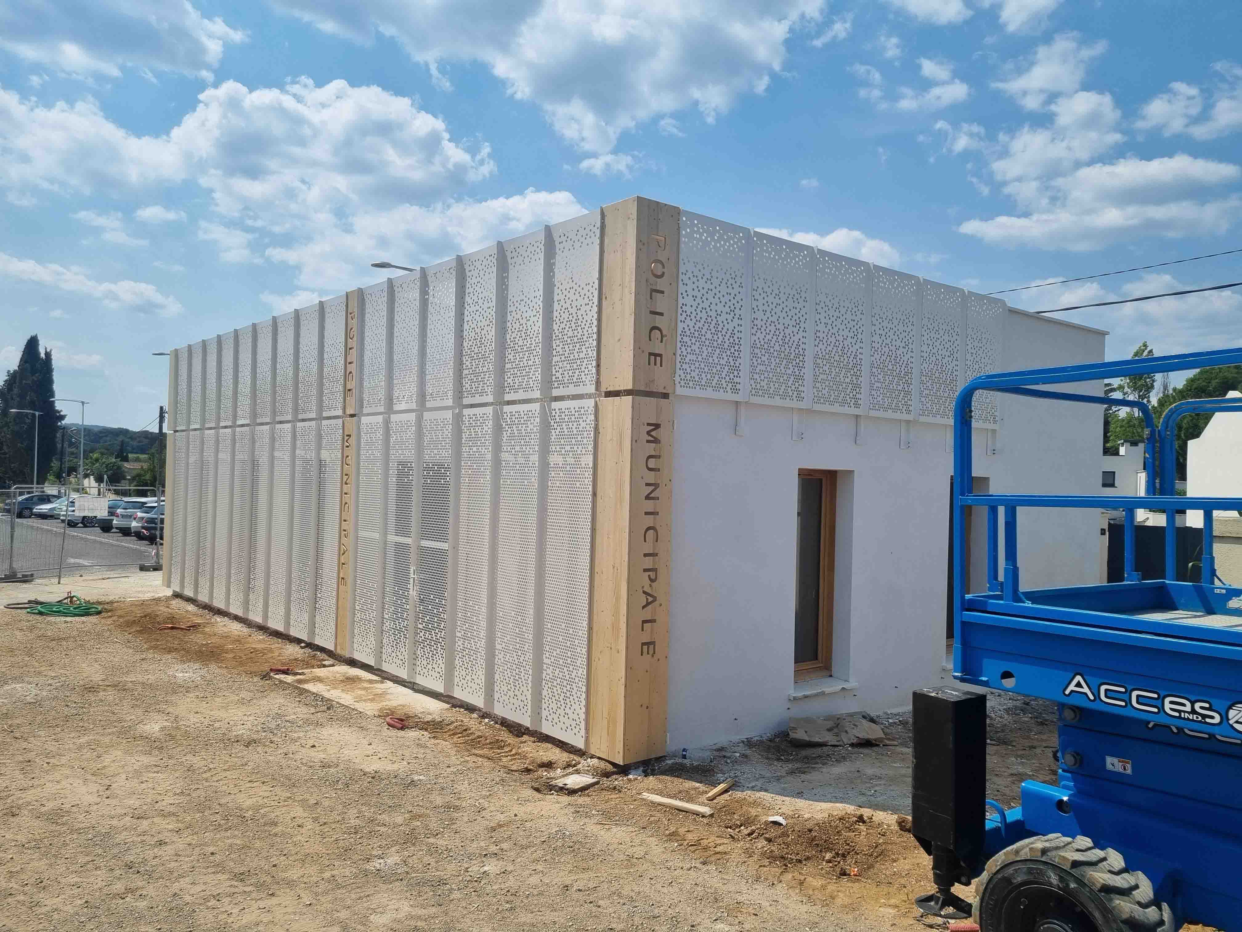 • Habillage façades double peau : réalisation d'un habillage de façade en plaque d'acier découpée et pliée selon dessin architecte,• Porte d'entrée en plaque d'acier découpée et pliée selon dessin architecte,